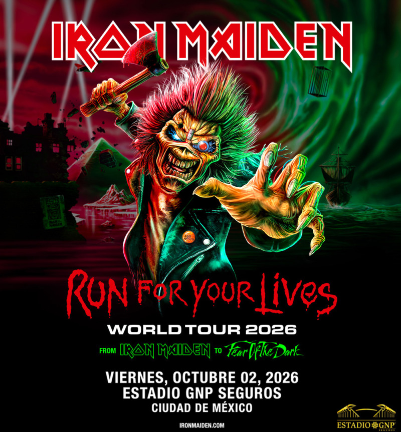 IRON MAIDEN today announces the highly anticipated return to Mexico with their critically acclaimed RUN FOR YOUR LIVES WORLD TOUR. In celebration of their 50th Anniversary, the band will be performing once more at the magnificent Estadio GNP Seguros, Mexico City on Friday 2nd October 2026 allowing fans the chance to witness the brand new, state-of-the-art production, on the scale it is intended for – huge stages in outdoor venues, to accompany the once-in-a-lifetime setlist of songs from the band’s groundbreaking first nine albums.
